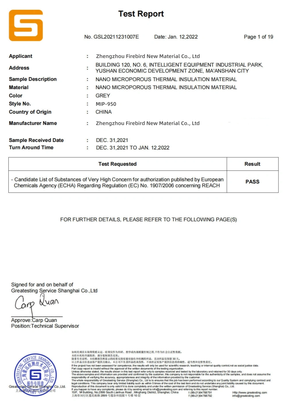 At Firebird, we prioritize quality and performance in every product we manufacture. Our refractory materials undergo rigorous testing to ensure they meet the highest industry standards. Each test report provides detailed information on thermal conductivity, compressive strength, chemical composition, and more, ensuring that our products deliver optimal results in high-temperature environments. Please refer to the individual reports below for comprehensive test data on our refractory solutions.
